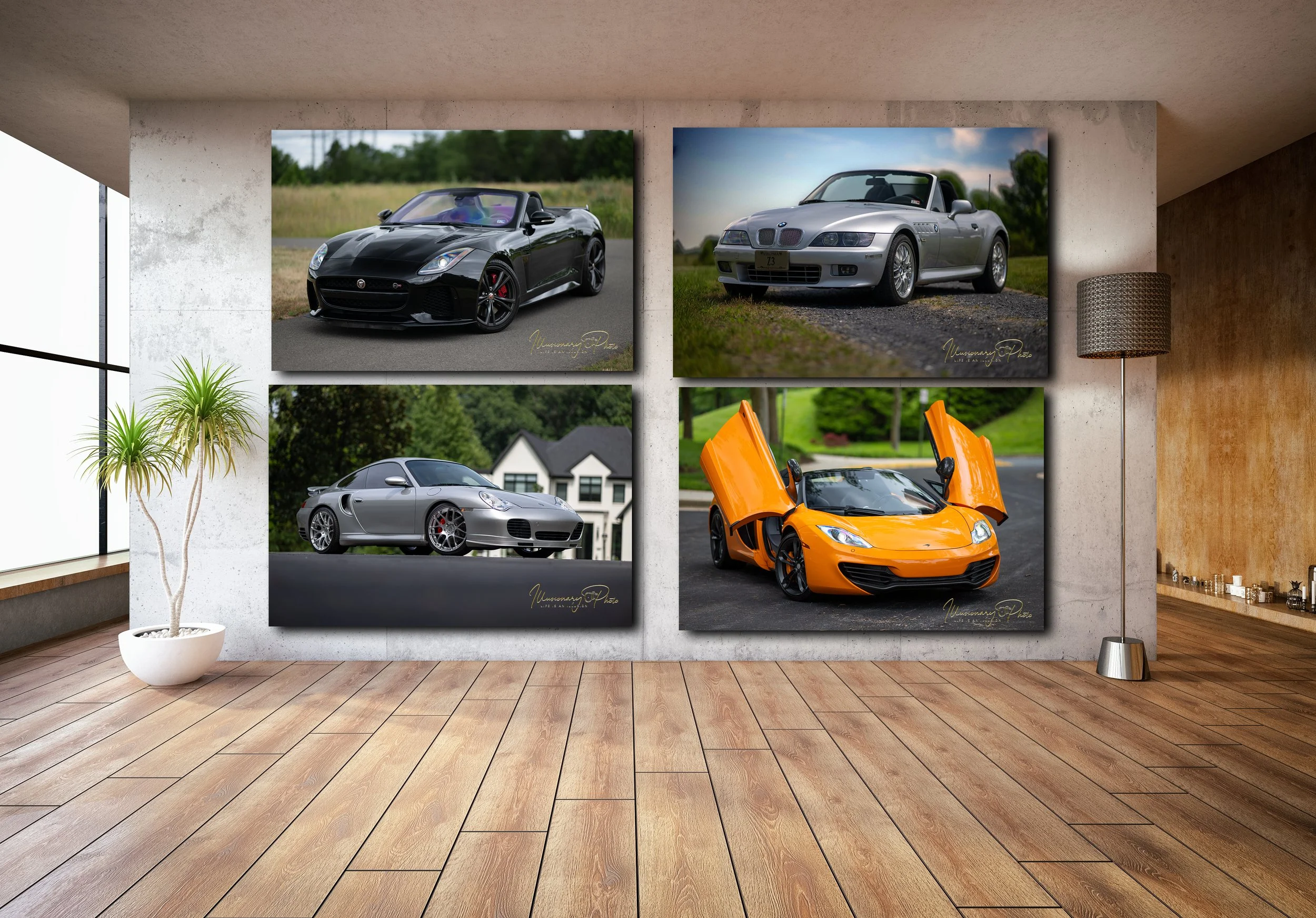These cars represent the very pinnacle of automotive design and performance. Instantly recognizable head-turners that become conversation pieces on the road and on your walls!